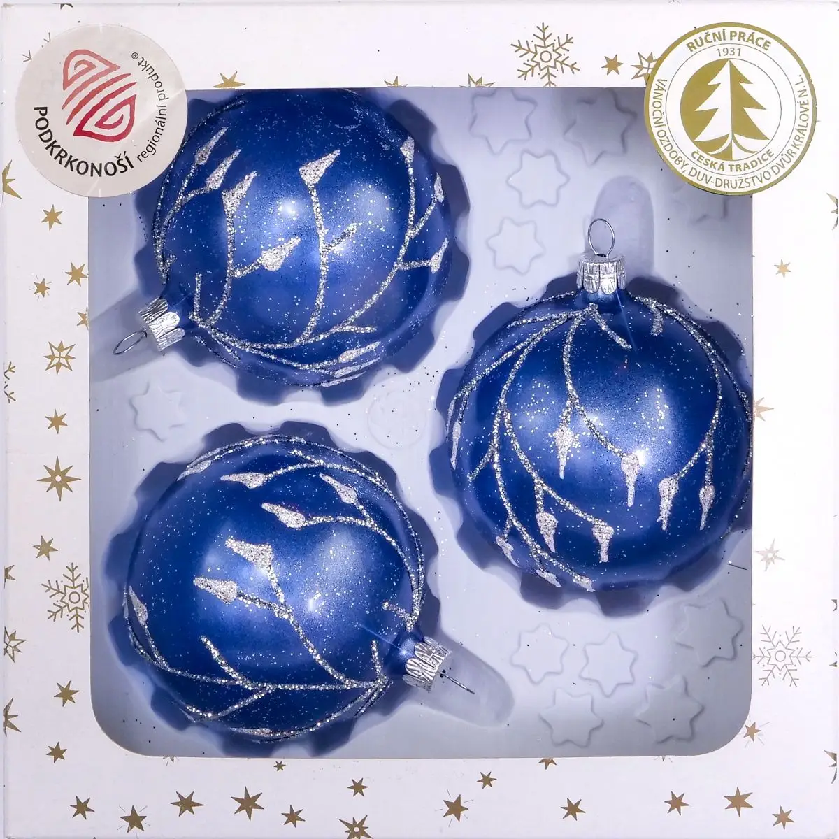 Koule,Dekorované modrá – metalíza 11129423 – 80 mm