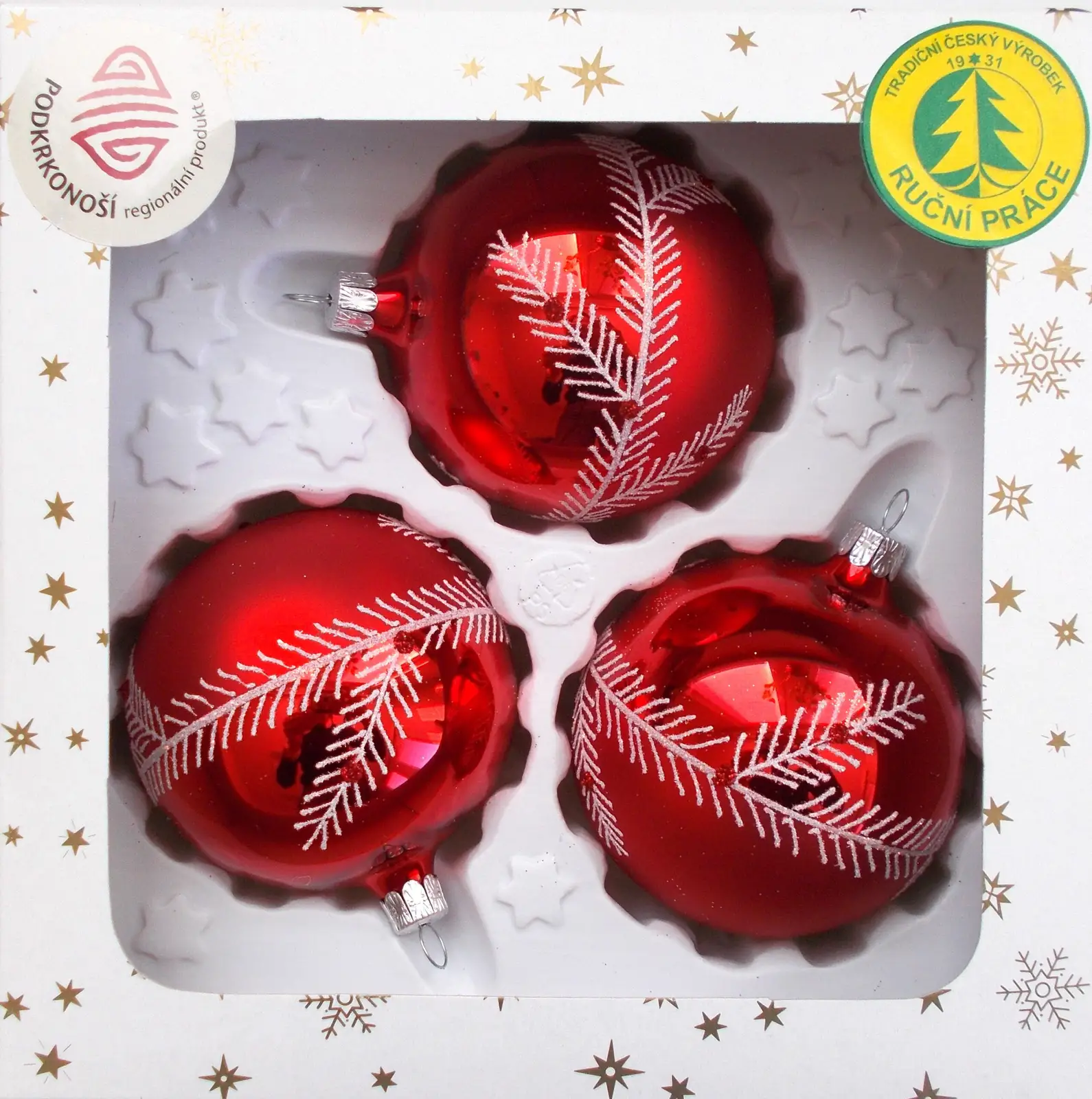 Koule,Dekorované červená – lesk 11229C43 – 80 mm