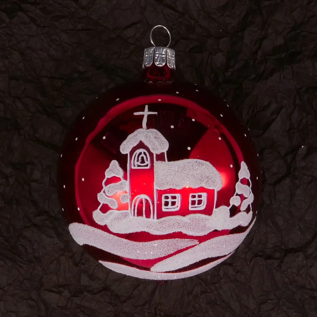 Koule,Dekorované červená – lesk 11229C80 – 80 mm