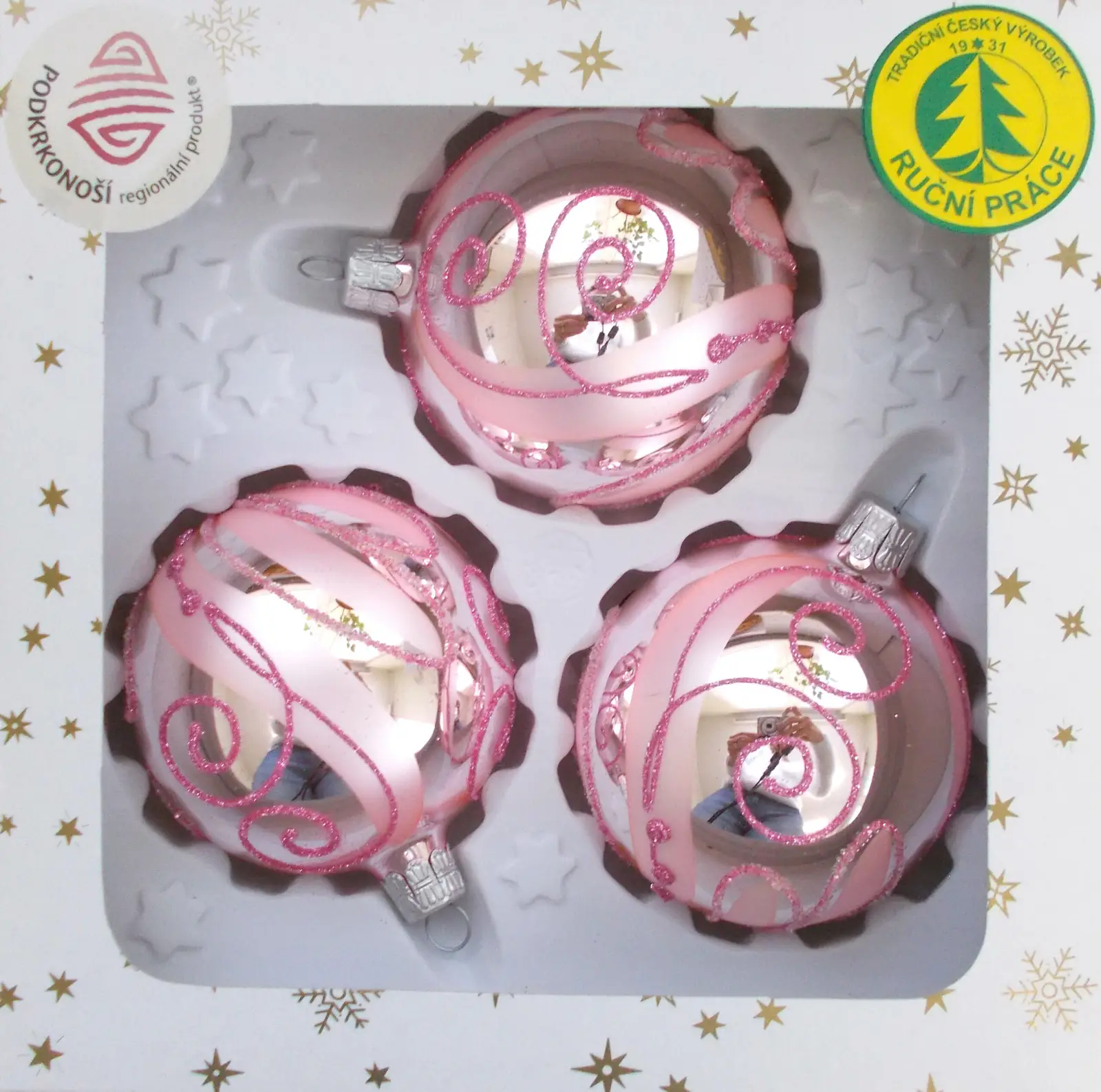 Koule,Dekorované sv.růžová – lesk 1122E563 – 80 mm