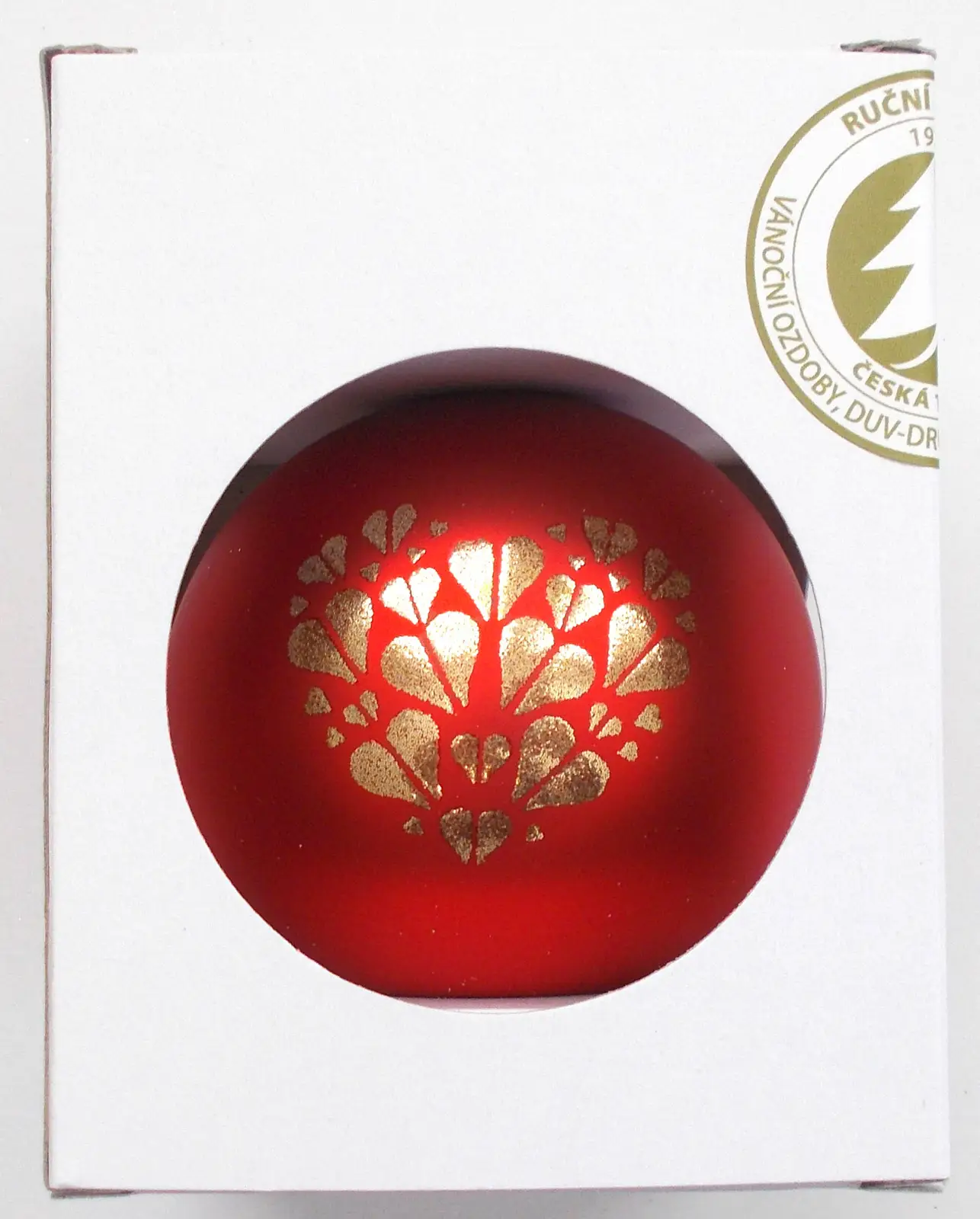 Tato skleněná koule v červeném matném provedení je ozdobena jemným dekorem, který dodává vánoční výzdobě sofistikovaný a slavnostní vzhled. Vyrobena tradičně ve Dvoře Králové nad Labem, její elegantní design vynikne na vánočním stromku a přináší harmonii do každého interiéru. S průměrem 80 mm a balením po 1 kuse je ideální volbou pro originální a stylové vánoční dekorace.