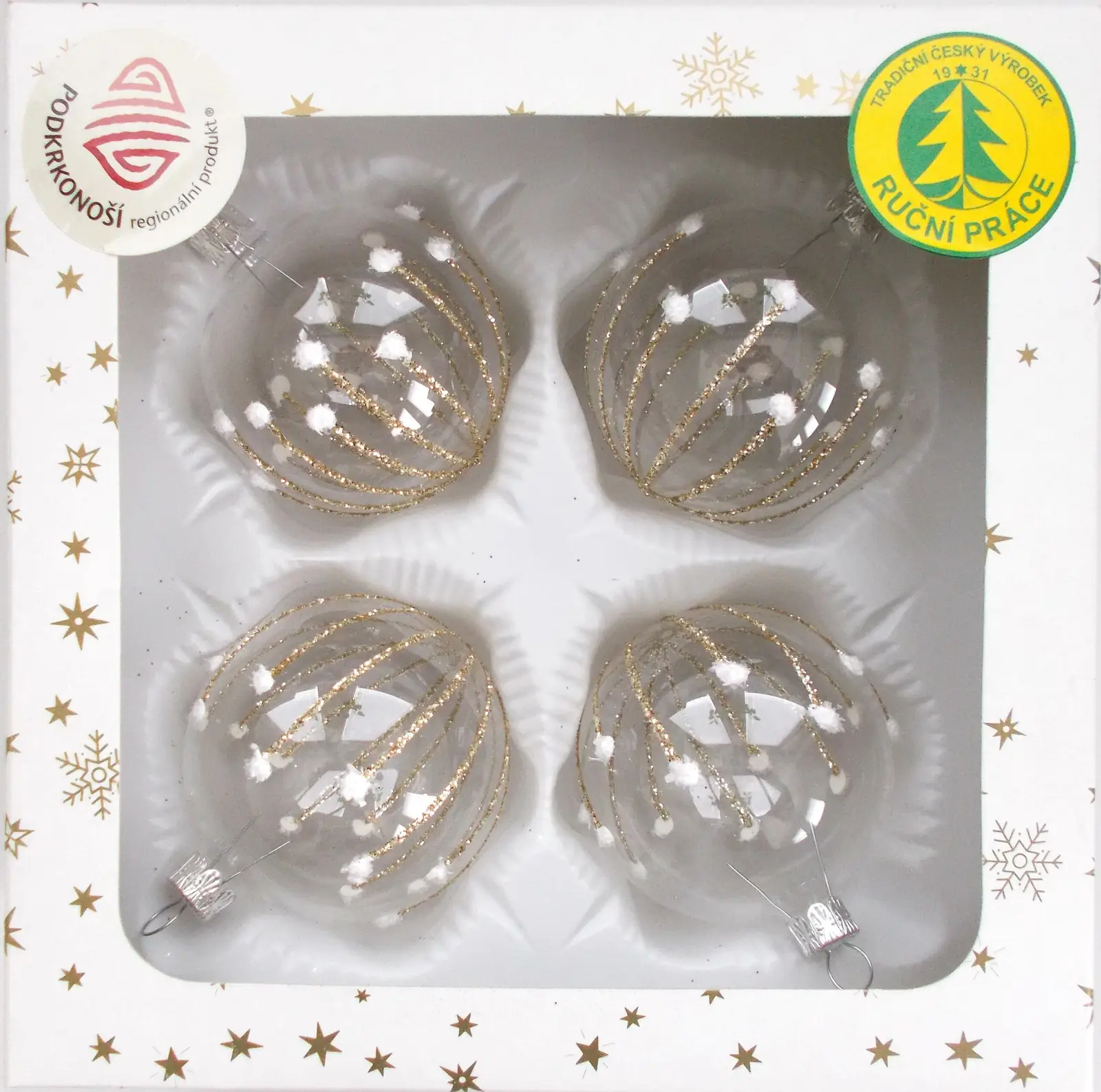Tato skleněná koule s elegantními hnědými proužky dodá vaší vánoční výzdobě jedinečný a moderní vzhled. Vyrobena tradičním způsobem ve Dvoře Králové nad Labem, zaujme svým originálním vzorem a precizním provedením. S průměrem 70 mm a balením po 4 kusech je ideální pro kombinaci s dalšími ozdobami nebo jako samostatný dekorativní prvek na vašem stromku.