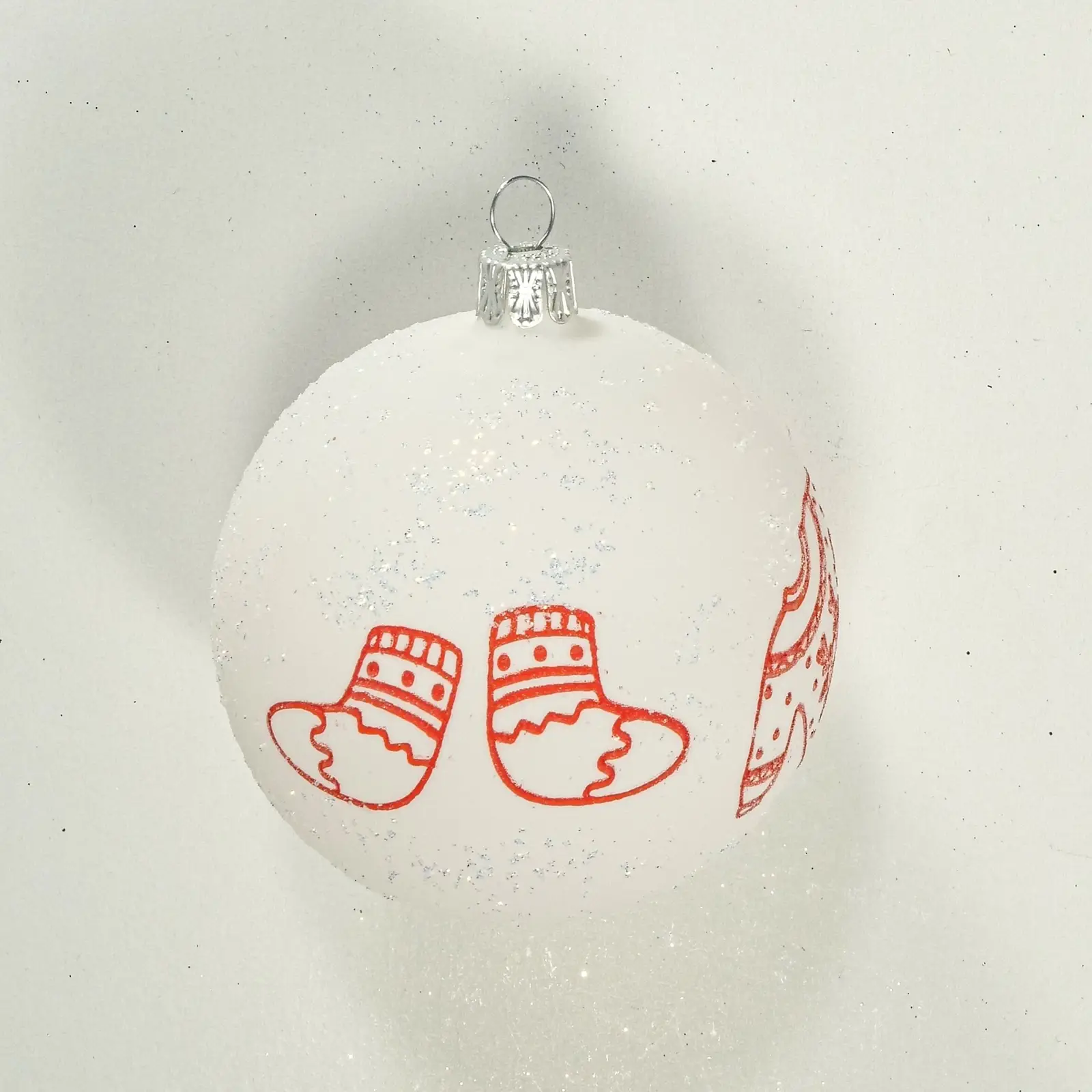 Tato skleněná koule v bílé matné úpravě s motivem dvou červených ponožek a jednoho svetru je hravým a originálním doplňkem vaší vánoční výzdoby. Vyrobena pečlivě ve Dvoře Králové nad Labem, tato ozdoba přináší do vašeho interiéru veselou atmosféru a připomíná teplé a útulné zimní večery. S průměrem 80 mm a balením po 3 kusech je ideální pro zvýraznění vašeho vánočního stromku nebo jako součást tematické dekorace.