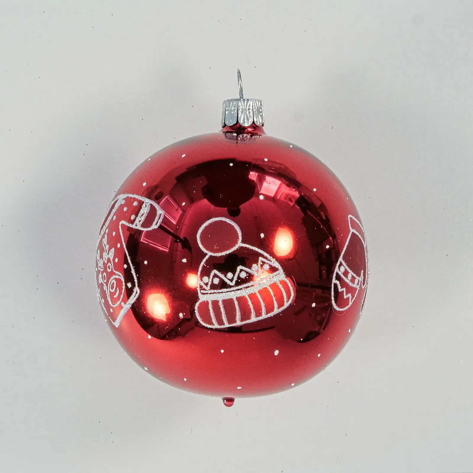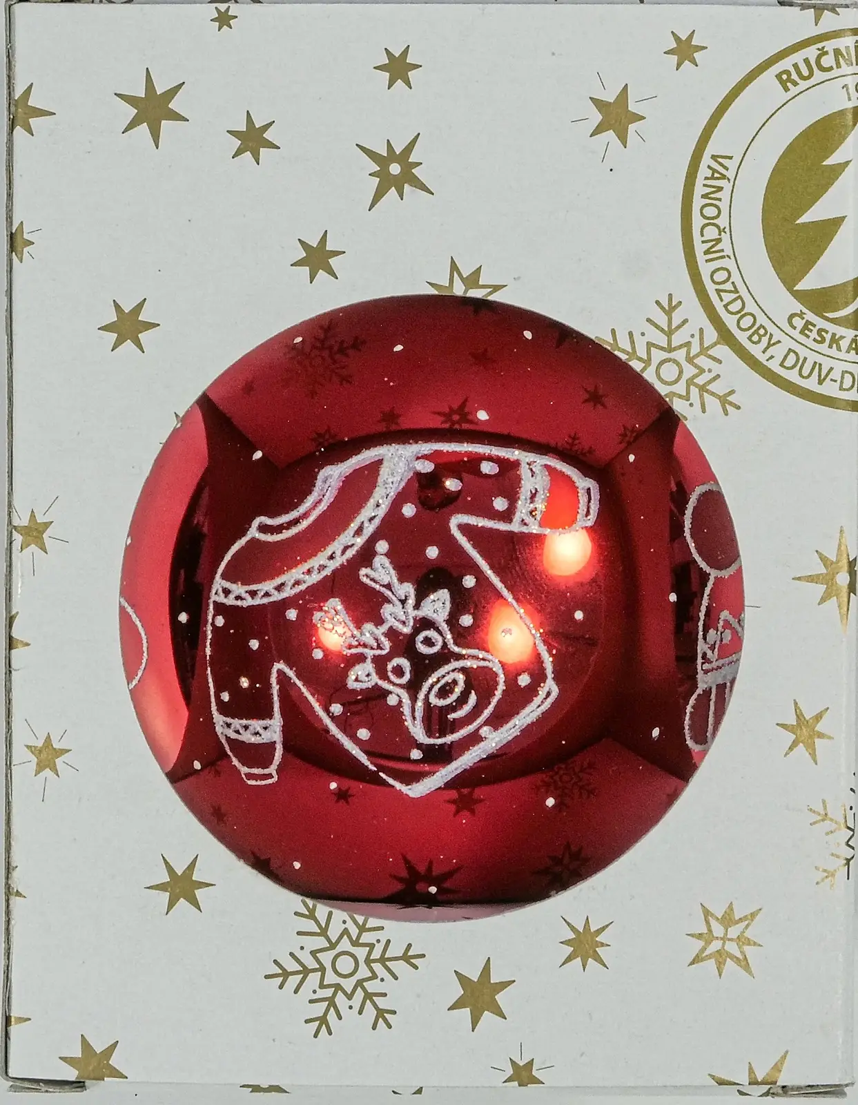 Tato skleněná koule v lesklé červené úpravě je ozdobena motivem vánočního svetru a doplněna dalšími zimními prvky, jako jsou rukavice, čepice a ponožky, které dodávají výzdobě hravý a útulný nádech. Vyrobena pečlivě ve Dvoře Králové nad Labem, její výrazná barva a stylové detaily přinášejí sváteční atmosféru a teplo do vašeho domova. S průměrem 80 mm a balením po 1 kuse je ideální volbou pro ozvláštnění vašeho vánočního stromku.