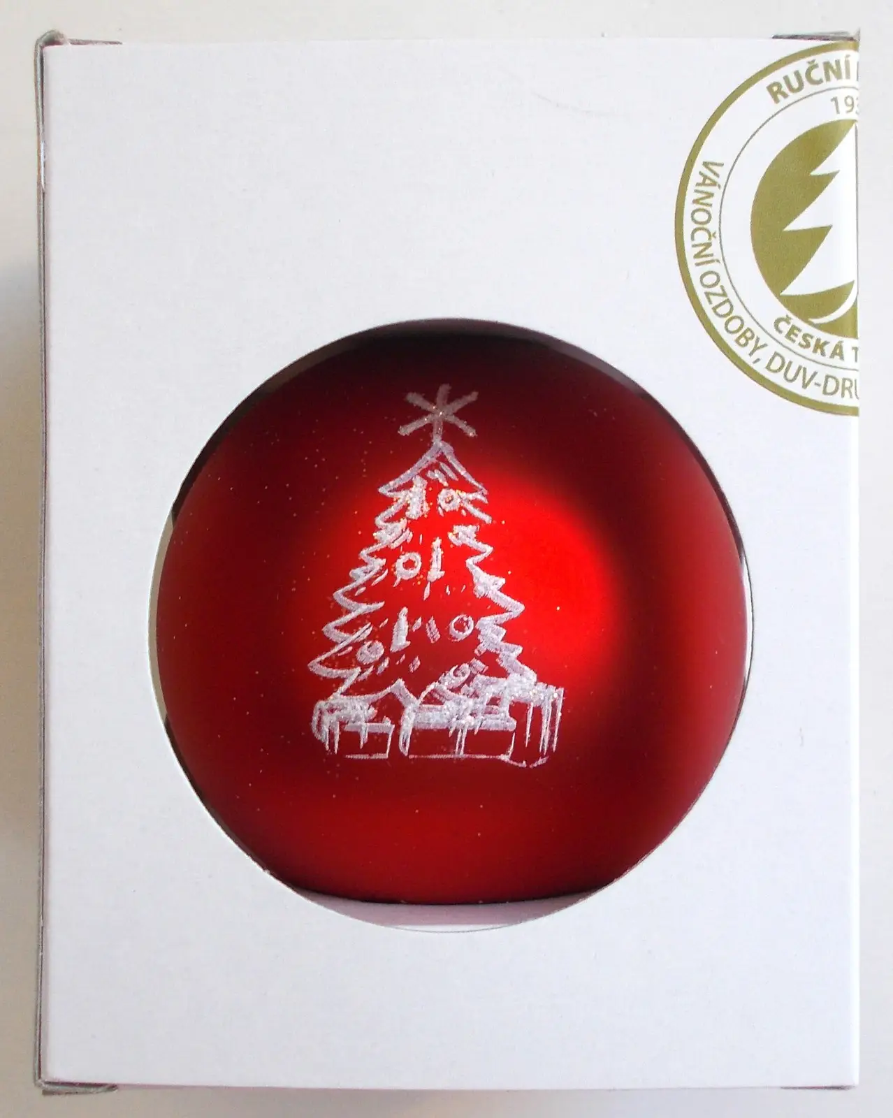 Tato skleněná koule v červené matné barvě je ozdobena vánočním nápisem a motivem slavnostního stromku, který dodává výzdobě hřejivou a sváteční atmosféru. Vyrobena tradičně ve Dvoře Králové nad Labem, její jemný dekor zajišťuje elegantní a originální vzhled. S průměrem 80 mm a balením po 1 kuse je ideálním doplňkem pro stylovou a tematickou vánoční výzdobu.